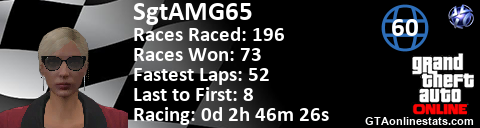 [URL=http://GTAonlinestats.com/showplayer/SgtAMG65/2][IMG]http://GTAonlinestats.com/racesignature/SgtAMG65/2/sig.png[/IMG][/URL]