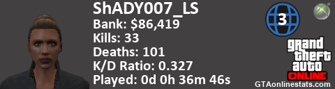 [URL=http://GTAonlinestats.com/showplayer/ShADY007_LS/2][IMG]http://GTAonlinestats.com/greysignature/ShADY007_LS/2/sig.png[/IMG][/URL]