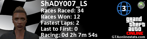 [URL=http://GTAonlinestats.com/showplayer/ShADY007_LS/2][IMG]http://GTAonlinestats.com/racesignature/ShADY007_LS/2/sig.png[/IMG][/URL]