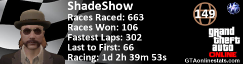 <a href="http://GTAonlinestats.com/showplayer/ShadeShow"><img src="http://GTAonlinestats.com/racesignature/ShadeShow/sig.png" alt="ShadeShow" border="0" /></a>