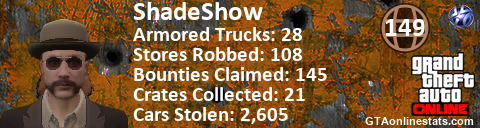 <a href="http://GTAonlinestats.com/showplayer/ShadeShow"><img src="http://GTAonlinestats.com/randomsignature/ShadeShow/sig.png" alt="ShadeShow" border="0" /></a>