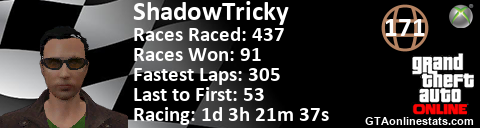 <a href="http://GTAonlinestats.com/showplayer/ShadowTricky"><img src="http://GTAonlinestats.com/racesignature/ShadowTricky/sig.png" alt="ShadowTricky" border="0" /></a>
