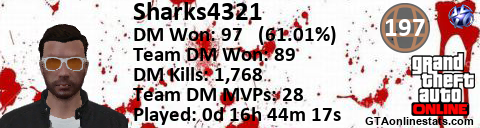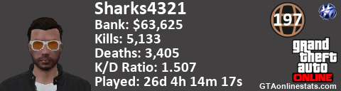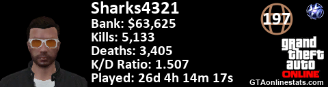 <a href="http://GTAonlinestats.com/showplayer/Sharks4321"><img src="http://GTAonlinestats.com/dmsignature/Sharks4321/sig.png" alt="Sharks4321" border="0" /></a>
