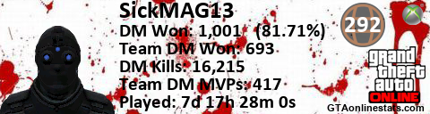 [URL=http://GTAonlinestats.com/showplayer/SickMAG13/2][IMG]http://GTAonlinestats.com/dmsignature/SickMAG13/2/sig.png[/IMG][/URL]