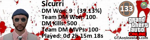 [URL=http://GTAonlinestats.com/showplayer/Sicurri/2][IMG]http://GTAonlinestats.com/dmsignature/Sicurri/2/sig.png[/IMG][/URL]