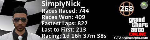 [URL=http://GTAonlinestats.com/showplayer/SimplyNick_][IMG]http://GTAonlinestats.com/racesignature/SimplyNick_/sig.png[/IMG][/URL]