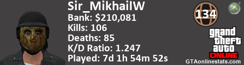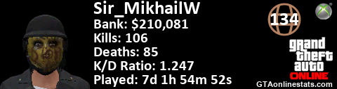 <a href="http://GTAonlinestats.com/showplayer/Sir_MikhailW"><img src="http://GTAonlinestats.com/signature/Sir_MikhailW/sig.png" alt="Sir_MikhailW" border="0" /></a>