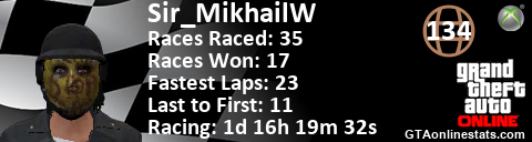 <a href="http://GTAonlinestats.com/showplayer/Sir_MikhailW"><img src="http://GTAonlinestats.com/racesignature/Sir_MikhailW/sig.png" alt="Sir_MikhailW" border="0" /></a>
