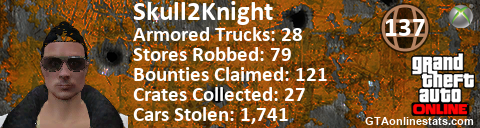 <a href="http://GTAonlinestats.com/showplayer/Skull2Knight"><img src="http://GTAonlinestats.com/signature/Skull2Knight/sig.png" alt="Skull2Knight" border="0" /></a>