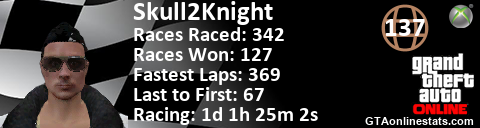 [URL=http://GTAonlinestats.com/showplayer/Skull2Knight][IMG]http://GTAonlinestats.com/racesignature/Skull2Knight/sig.png[/IMG][/URL]
