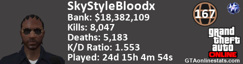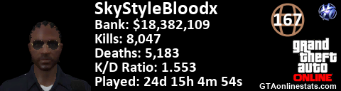<a href="http://GTAonlinestats.com/showplayer/SkyStyleBloodx"><img src="http://GTAonlinestats.com/signature/SkyStyleBloodx/sig.png" alt="SkyStyleBloodx" border="0" /></a>