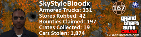 [URL=http://GTAonlinestats.com/showplayer/SkyStyleBloodx][IMG]http://GTAonlinestats.com/crimesignature/SkyStyleBloodx/sig.png[/IMG][/URL]