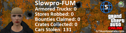 [URL=http://GTAonlinestats.com/showplayer/Slowpro-FUM/2][IMG]http://GTAonlinestats.com/signature/Slowpro-FUM/2/sig.png[/IMG][/URL]