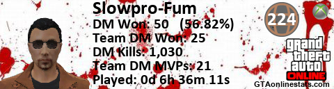 [URL=http://GTAonlinestats.com/showplayer/Slowpro-Fum][IMG]http://GTAonlinestats.com/dmsignature/Slowpro-Fum/sig.png[/IMG][/URL]