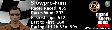<a href="http://GTAonlinestats.com/showplayer/Slowpro-Fum"><img src="http://GTAonlinestats.com/racesignature/Slowpro-Fum/sig.png" alt="Slowpro-FUM" border="0" /></a>