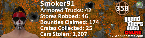 <a href="http://GTAonlinestats.com/showplayer/Smoker91"><img src="http://GTAonlinestats.com/randomsignature/Smoker91/sig.png" alt="Smoker91" border="0" /></a>