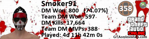 [URL=http://GTAonlinestats.com/showplayer/Smoker91][IMG]http://GTAonlinestats.com/dmsignature/Smoker91/sig.png[/IMG][/URL]