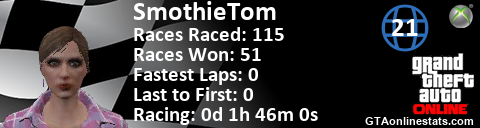 [URL=http://GTAonlinestats.com/showplayer/SmothieTom/2][IMG]http://GTAonlinestats.com/racesignature/SmothieTom/2/sig.png[/IMG][/URL]