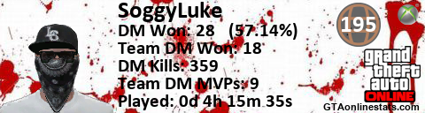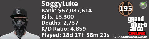 [URL=http://GTAonlinestats.com/showplayer/SoggyLuke/2][IMG]http://GTAonlinestats.com/dmsignature/SoggyLuke/2/sig.png[/IMG][/URL]