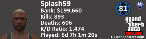 <a href="http://GTAonlinestats.com/showplayer/Splash59"><img src="http://GTAonlinestats.com/signature/Splash59/sig.png" alt="Splash59" border="0" /></a>