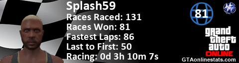 <a href="http://GTAonlinestats.com/showplayer/Splash59"><img src="http://GTAonlinestats.com/racesignature/Splash59/sig.png" alt="Splash59" border="0" /></a>