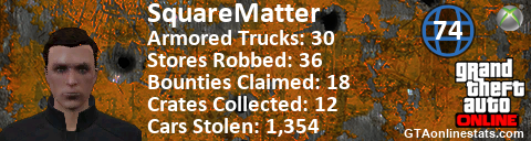 [URL=http://GTAonlinestats.com/showplayer/SquareMatter][IMG]http://GTAonlinestats.com/randomsignature/SquareMatter/sig.png[/IMG][/URL]
