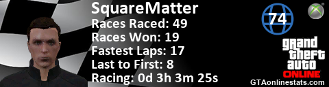 [URL=http://GTAonlinestats.com/showplayer/SquareMatter][IMG]http://GTAonlinestats.com/racesignature/SquareMatter/sig.png[/IMG][/URL]