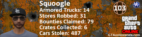 [URL=http://GTAonlinestats.com/showplayer/Squoogle][IMG]http://GTAonlinestats.com/randomsignature/Squoogle/sig.png[/IMG][/URL]