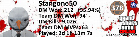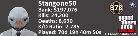<a href="http://GTAonlinestats.com/showplayer/Stangone50"><img src="http://GTAonlinestats.com/dmsignature/Stangone50/sig.png" alt="Stangone50" border="0" /></a>