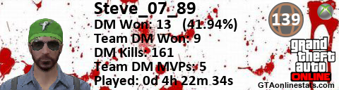 <a href="http://GTAonlinestats.com/showplayer/Steve_07_89"><img src="http://GTAonlinestats.com/dmsignature/Steve_07_89/sig.png" alt="Steve_07_89" border="0" /></a>