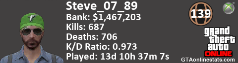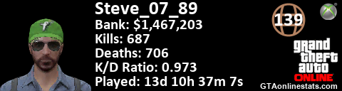 <a href="http://GTAonlinestats.com/showplayer/Steve_07_89"><img src="http://GTAonlinestats.com/signature/Steve_07_89/sig.png" alt="Steve_07_89" border="0" /></a>