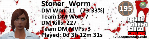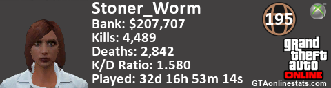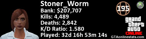 <a href="http://GTAonlinestats.com/showplayer/Stoner_Worm"><img src="http://GTAonlinestats.com/dmsignature/Stoner_Worm/sig.png" alt="Stoner_Worm" border="0" /></a>