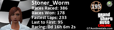 <a href="http://GTAonlinestats.com/showplayer/Stoner_Worm"><img src="http://GTAonlinestats.com/racesignature/Stoner_Worm/sig.png" alt="Stoner_Worm" border="0" /></a>