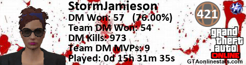 [URL=http://GTAonlinestats.com/showplayer/StormJamieson][IMG]http://GTAonlinestats.com/dmsignature/StormJamieson/sig.png[/IMG][/URL]