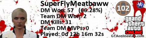 [URL=http://GTAonlinestats.com/showplayer/SuperFlyMeatbaww/3][IMG]http://GTAonlinestats.com/dmsignature/SuperFlyMeatbaww/3/sig.png[/IMG][/URL]