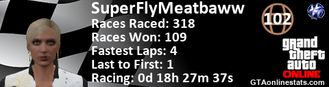 [URL=http://GTAonlinestats.com/showplayer/SuperFlyMeatbaww/3][IMG]http://GTAonlinestats.com/racesignature/SuperFlyMeatbaww/3/sig.png[/IMG][/URL]