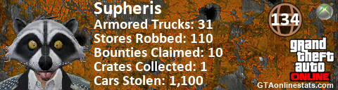 [URL=http://GTAonlinestats.com/showplayer/Supheris][IMG]http://GTAonlinestats.com/crimesignature/Supheris/sig.png[/IMG][/URL]