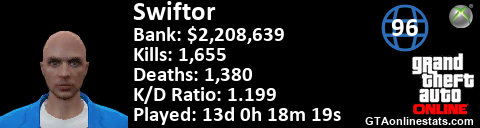 <a href="http://GTAonlinestats.com/showplayer/Swiftor"><img src="http://GTAonlinestats.com/signature/Swiftor/sig.png" alt="Swiftor" border="0" /></a>