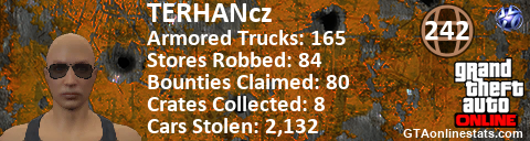 [URL=http://GTAonlinestats.com/showplayer/TERHANcz][IMG]http://GTAonlinestats.com/crimesignature/TERHANcz/sig.png[/IMG][/URL]