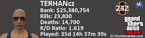 [URL=http://GTAonlinestats.com/showplayer/TERHANcz][IMG]http://GTAonlinestats.com/greysignature/TERHANcz/sig.png[/IMG][/URL]