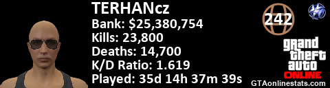 <a href="http://GTAonlinestats.com/showplayer/TERHANcz"><img src="http://GTAonlinestats.com/signature/TERHANcz/sig.png" alt="TERHANcz" border="0" /></a>