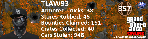 [URL=http://GTAonlinestats.com/showplayer/TLAW93][IMG]http://GTAonlinestats.com/crimesignature/TLAW93/sig.png[/IMG][/URL]