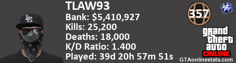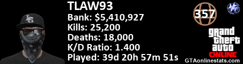 [URL=http://GTAonlinestats.com/showplayer/TLAW93][IMG]http://GTAonlinestats.com/signature/TLAW93/sig.png[/IMG][/URL]