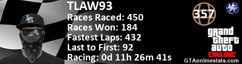 [URL=http://GTAonlinestats.com/showplayer/TLAW93][IMG]http://GTAonlinestats.com/racesignature/TLAW93/sig.png[/IMG][/URL]