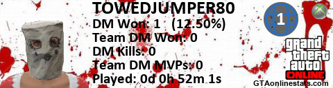 [URL=http://GTAonlinestats.com/showplayer/TOWEDJUMPER80/2][IMG]http://GTAonlinestats.com/dmsignature/TOWEDJUMPER80/2/sig.png[/IMG][/URL]