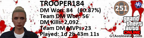<a href="http://GTAonlinestats.com/showplayer/TROOPER184"><img src="http://GTAonlinestats.com/dmsignature/TROOPER184/sig.png" alt="TROOPER184" border="0" /></a>