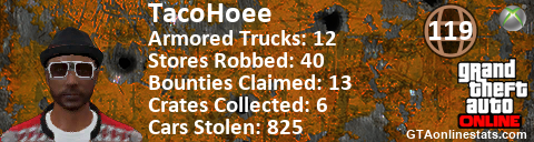 [URL=http://GTAonlinestats.com/showplayer/TacoHoee][IMG]http://GTAonlinestats.com/randomsignature/TacoHoee/sig.png[/IMG][/URL]