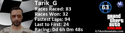 [URL=http://GTAonlinestats.com/showplayer/Tarik_G][IMG]http://GTAonlinestats.com/racesignature/Tarik_G/sig.png[/IMG][/URL]