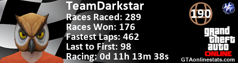 [URL=http://GTAonlinestats.com/showplayer/TeamDarkstar][IMG]http://GTAonlinestats.com/racesignature/TeamDarkstar/sig.png[/IMG][/URL]