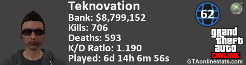 [URL=http://GTAonlinestats.com/showplayer/Teknovation][IMG]http://GTAonlinestats.com/dmsignature/Teknovation/sig.png[/IMG][/URL]